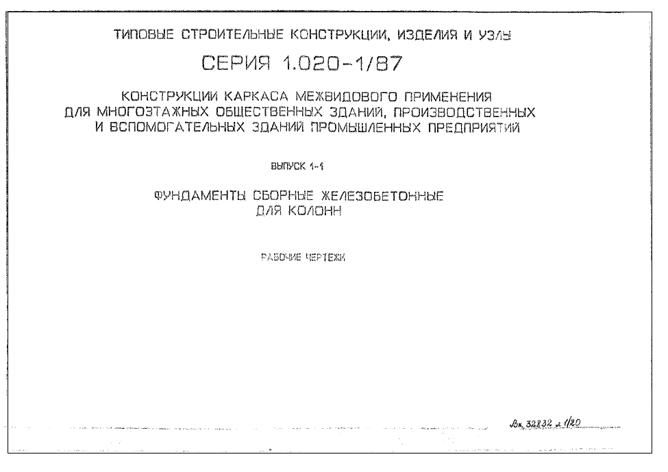 Серия 1.020-1/87. Конструкции каркаса межвидового применения для многоэтажных зданий