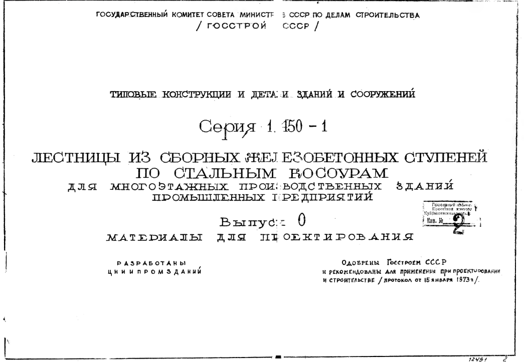 Серия 1.450-1. Лестницы из сборных железобетонных ступеней со стальным косоурам для многоэтажных производственных зданий промышленных предприятий