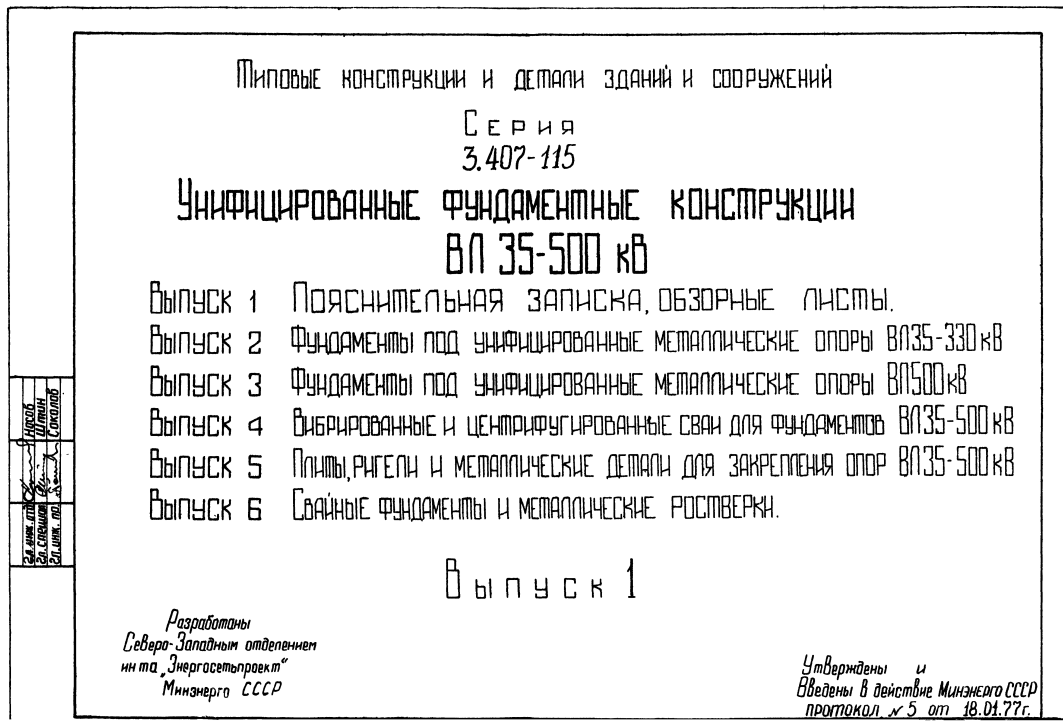Серия 3.407-115. Унифицированные фундаментные конструкции ВЛ 35-500 кВ