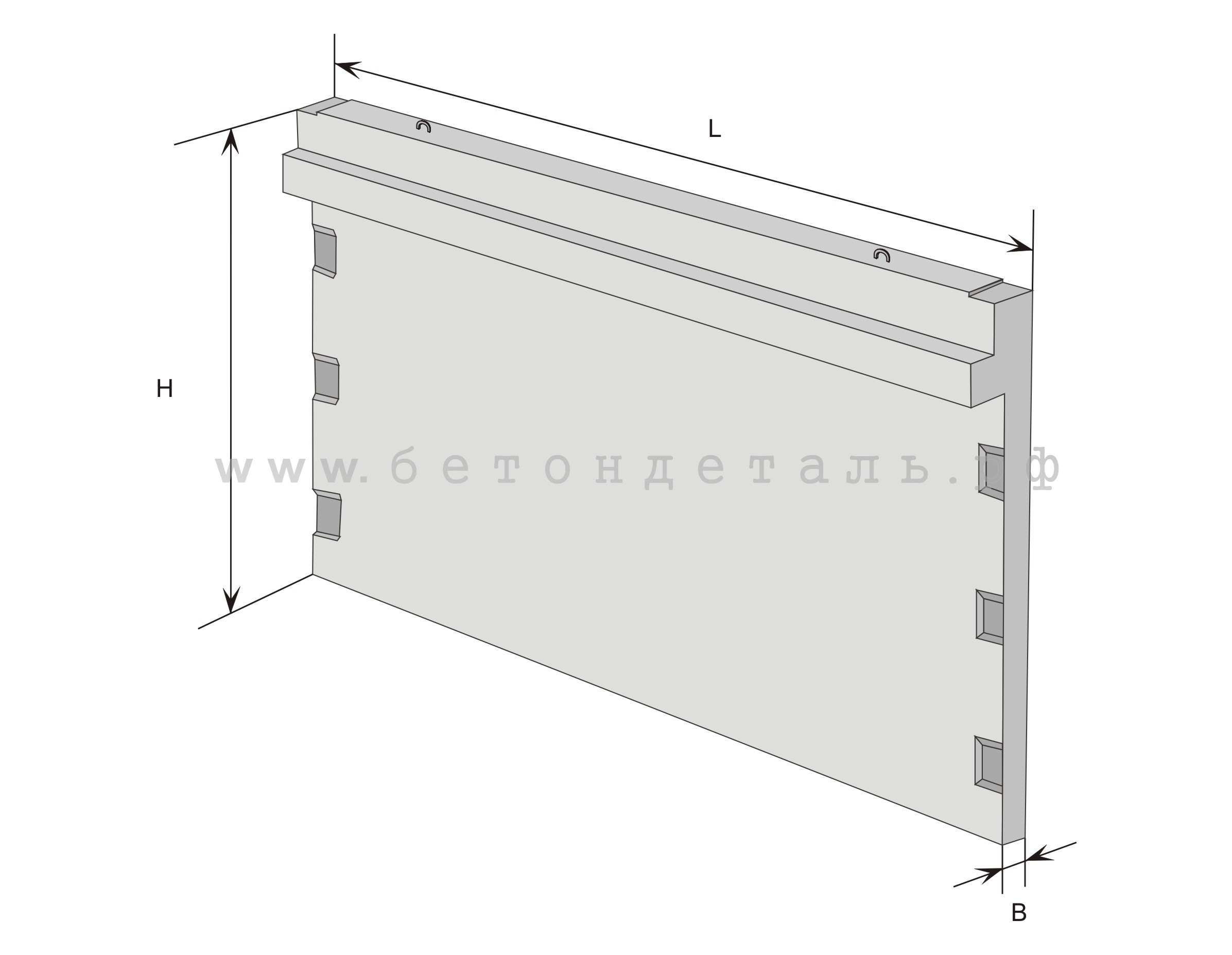 Диафрагма жесткости с одной полкой 1Д 56-28 – это железобетонное изделие, представляющее собой один из основных элементов зданий и сооружений, обеспечивающий безопасность конструкции в ходе эксплуатации. Основной задачей диафрагмы жесткости 1Д 56-28 является восприятие горизонтальных нагрузок, таких как ветровые, сейсмические и нагрузки от действующего оборудования в здании. Нагрузка, передаётся на диафрагму от наружных стен через «диск» перекрытий. Как правило, ядра жесткости высотных зданий устанавливаются на массивный монолитный плитный фундамент. Диафрагмы жесткости в системе унифицированного каркаса могут формироваться из сборных железобетонных элементов. Диафрагмы в виде ядер жесткости могут иметь различную форму в виде плоских стен, уголков, швеллеров, замкнутых сечений прямоугольников, многоугольников и т. д. Консоли диафрагм жесткости сконструированы на расчетные нагрузки 55 и 110кН/м.