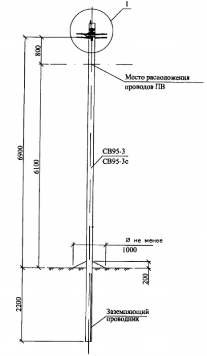 Опора промежуточная П 24 закрепляется в котловане на глубину от 2 до 2,5 метров. Опоры применяются совместно с анкерными плитами. Стойку опоры устанавливают не вертикально, а с наклоном на 10-20 см в сторону, противоположную воздействию усилий от натяжения проводов.