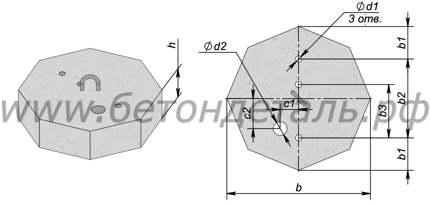 Плиты опорно-анкерные П-4и представляет собой железобетонное изделие в форме восьмиугольника. Опорно-анкерная плита применяется для устройства дополнительной опорной поверхности под рядом низковольтных опор ЛЭП. Чаще всего опорно-анкерные плиты используются при монтаже промежуточных и анкерных стоек из вибрированного бетона (СВ, СНВ).В некоторых случаях плиты данного типа используются в индивидуальном строительстве, при упорах колодцев и других инженерных сооружений. Опорно-анкерная плита П-4и может быть использована и на территориях со слабыми грунтами. В таком случае опорные анкерные плиты используют в качестве ригеля, обкладывая ими стойки ЛЭП на глубине полуметра от поверхности грунта. Благодаря этому стойка получает дополнительный жесткий упор, увеличивающий сопротивления ветровым нагрузкам и силам морозного пучения. Изделия прекрасно противостоят химической коррозии. Плиты П-4и имеют достаточно продолжительный эксплуатационный срок, обладают свойствами, благодаря которым могут выдерживать значительные нагрузки, при этом сохраняя прочность и надежность опоры.