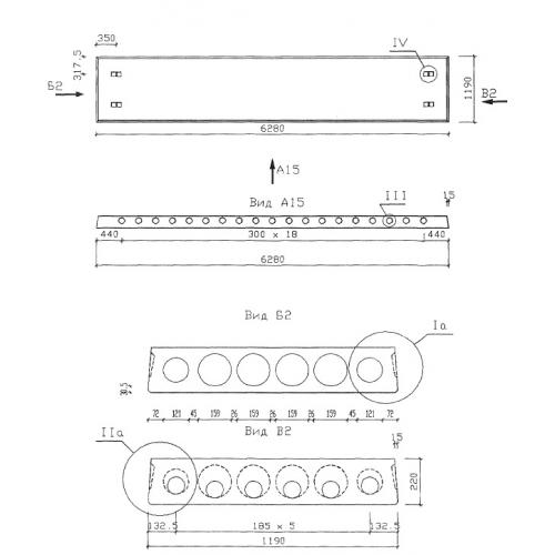 Плиты длиной 6280 мм и шириной 1190 мм с напрягаемой арматурой из стали классов  A-IIIв, A-IV, Ат-V , из тяжелого бетона.  Метод натяжения - электротермический.