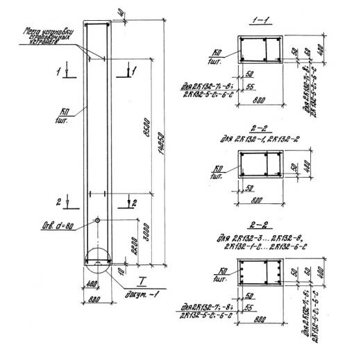 К 132   Железобетонные колонны прямоугольного сечения для одноэтажных производственных зданий Серия 1.423-5.