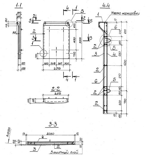 Панель стеновая для цилиндрических сооружений с радиусом кривизны 15 м; высотой 3 м; первого типа по нагрузке.